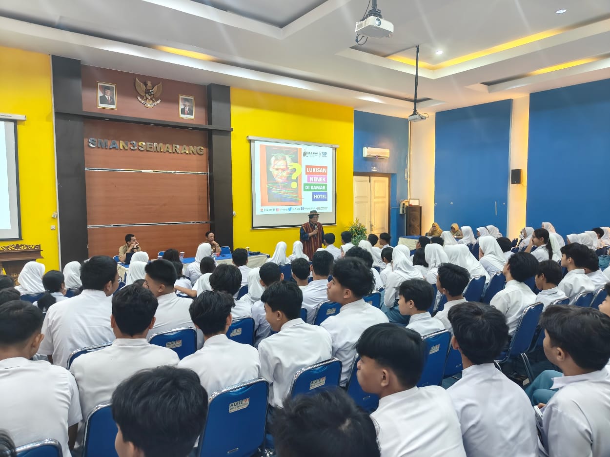 Semarang – Pada Senin, 10 Oktober 2025, SMA Negeri 3 Semarang kedatangan tamu spesial, yaitu Bapak Heri Hendrayana Harris atau yang lebih dikenal sebagai Gol A Gong. Beliau adalah sastrawan Indonesia yang menjabat sebagai Duta Baca Indonesia periode 2021 – 2026. Beliau merupakan narasumber dari kegiatan yang bertemakan “Sastra, Penulian, dan Jurnalistik” yang diadakan di ruang multimedia.